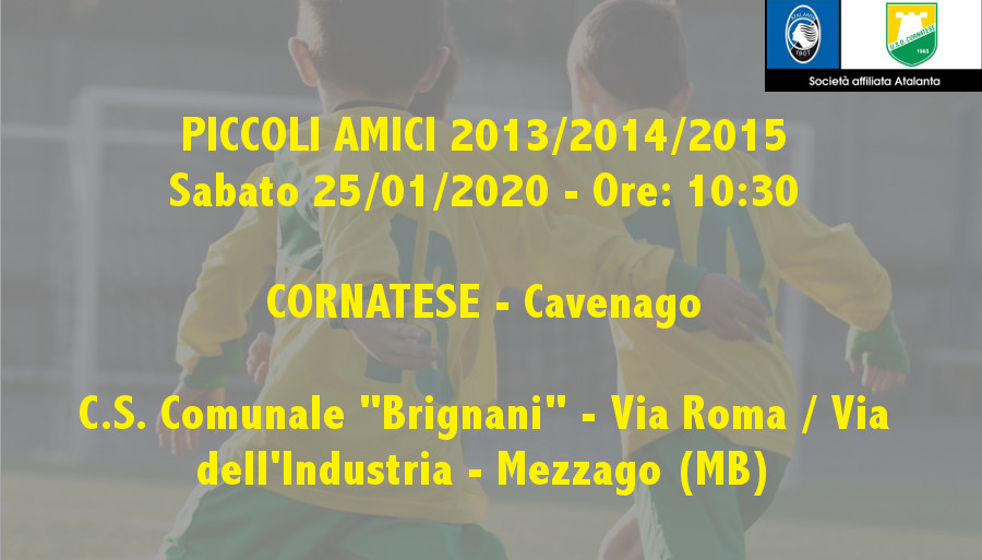 Sabato 01/02 – Ore: 15:00. Ritrovo ore 14:00 presso il centro sportivo.