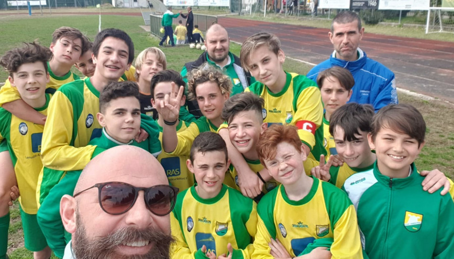 Foto di gruppo per i nostri 2012 prima della partita con l’Ausonia. Diciamo che viene semplice: noi giallo, loro verdi….. Gemellaggio assicurato :-).